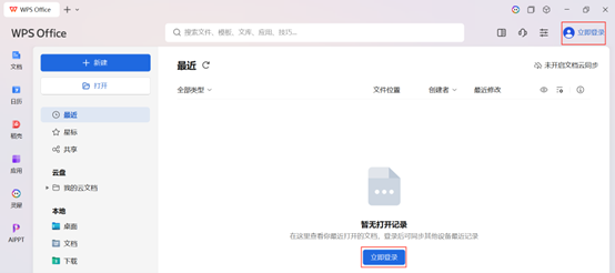 PC端打开第1步中下载安装的WPS客户端,点击右上角选择【立即登录/登录其他账号】