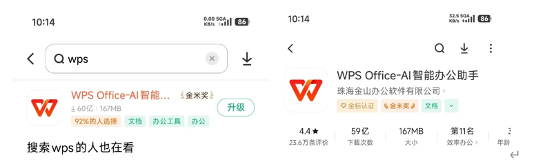 可通过各大手机品牌自带的「应用商店」搜索「WPS Office」、「WPS协作」下载最新(珠海金山办公软件)官方版本。